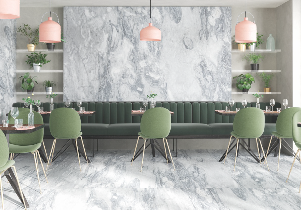 Bello y glamoroso, para un estilo clásico, Crystal Lumix es perfecto para salas o espacios más íntimos. Su delicada textura translúcida y veteada expresa la nobleza y suavidad de las piedras, puede lucirse también en mesones para bares gracias al efecto visual que crea cuando se combina con luz.